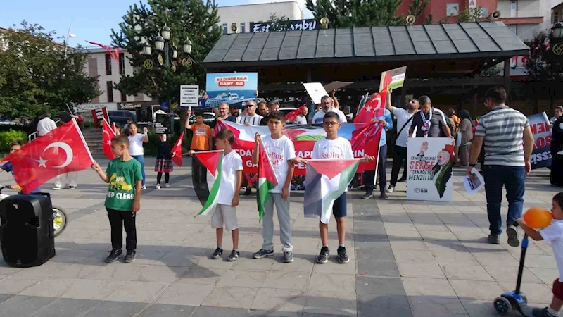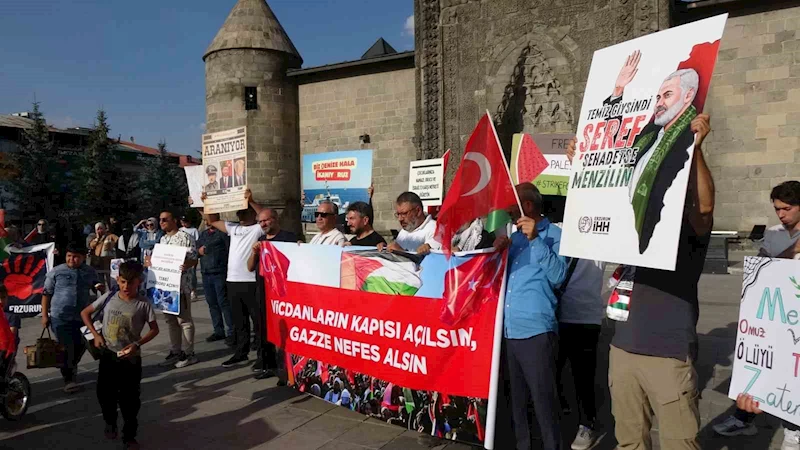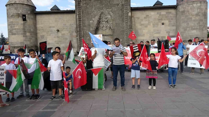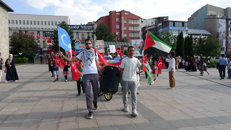 Lala Mustafa Paşa Cami önünde bir araya gelen hekim ve tıp fakültesi öğrencilerinin de bulunduğu sağlık çalışanları, Türk, Filistin ve Doğu Türkistan bayrakları eşliğinde, taşıdıkları döviz ve pankartlarla Yakutiye Medresesi’ne yürüdü.