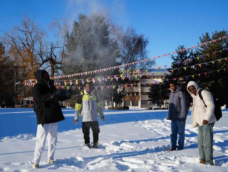 Erzurum’da öğrenim hayatlarına devam eden ve hayatlarında ilk kez kar yağışını gören Afrikalı öğrenciler hayretlerini gizleyemediler.