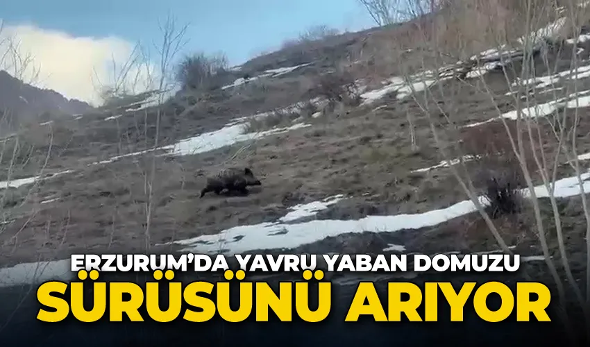 Erzurum’un Güzel Hisar Mahallesi’nde sürüsünü kaybeden yavru yaban domuzu cep telefonu kamerası ile görüntülendi.