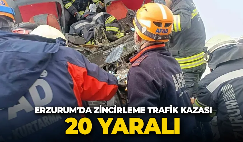 Erzurum’un Aşkale ilçesine bağlayan kara yolunda sabah saatlerinde yolcu otobüsü, tır, minibüs, iş makinesi, otomobil ve ticari olmak üzere toplam 11 aracın karıştığı zincirleme trafik kazasında 20 kişi yaralandı.