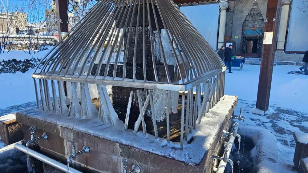Yaklaşık bir haftadır etkili olan şiddetli soğuk hava dalgası, Türkiye’nin en soğuk illerinden biri olan Erzurum’da yaşamı olumsuz etkiliyor. Termometreler gün içinde bile eksi dereceleri gösterirken, kent merkezindeki açık alandaki çeşmeler ve tarihi şadırvanlar tamamen dondu.