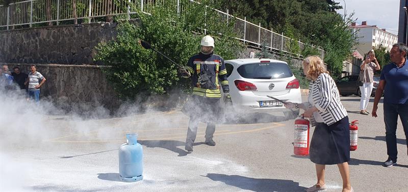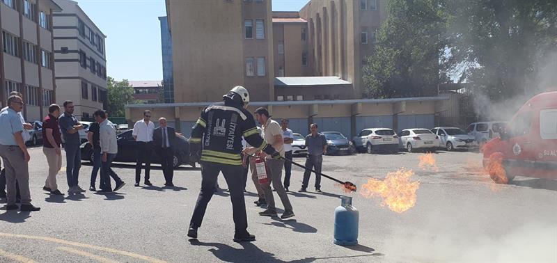 Tatbikat sırasında personel, yangın söndürme tüpleriyle müdahale pratiği yaparken, planlı tahliye çalışmasıyla da binanın kısa sürede boşaltılması sağlandı. Eğitim sonunda, hem itfaiye ekiplerinin hem de müdürlük personelinin bilgi ve becerileri pekiştirildi.