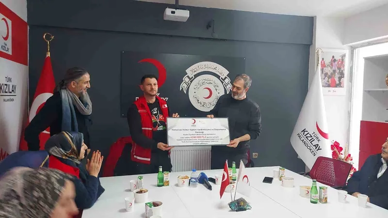 Palandöken Kızılay Şubesi’nde, Hatuniye Kültür Eğitim Yardımlaşma ve Dayanışma Derneği üyesi kadınlarının hayır çarşısında elde ettikleri gelirin Gazzelilere gönderilmesi için program düzenlendi.
