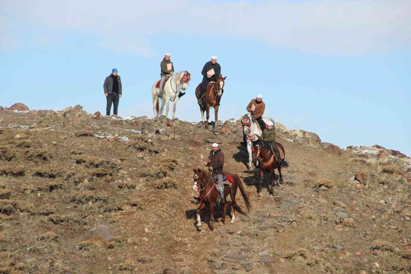 Soğuk havaya rağmen geleneği devam ettirmek isteyenler karlı dağları aşarak Pir Ali Baba Türbesine ulaşırken, hafızların at üstünde okuduğu dualar ise duygu dolu anlar yaşattı.