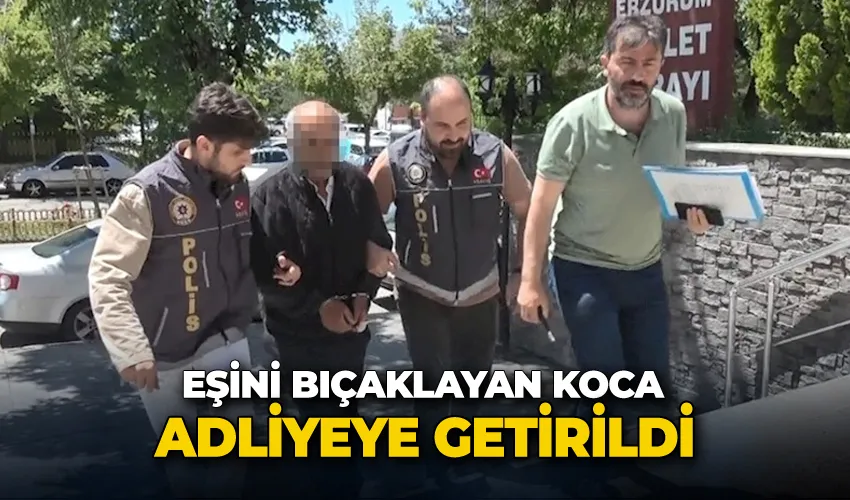 Erzurum’da tartıştığı eşini bıçaklayarak ağır şekilde yaralayan adam, polis tarafından adliyeye çıkarıldı.