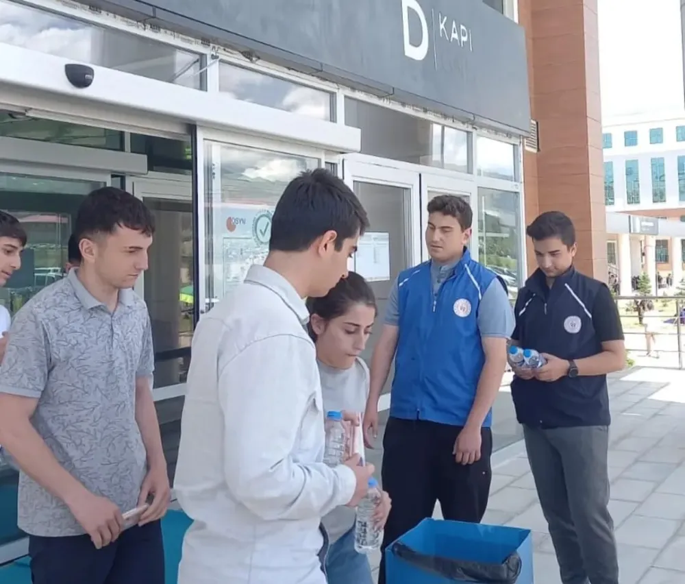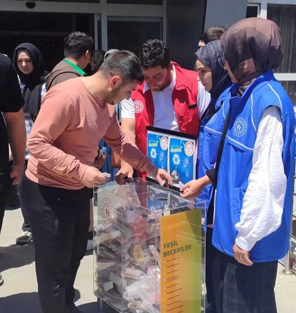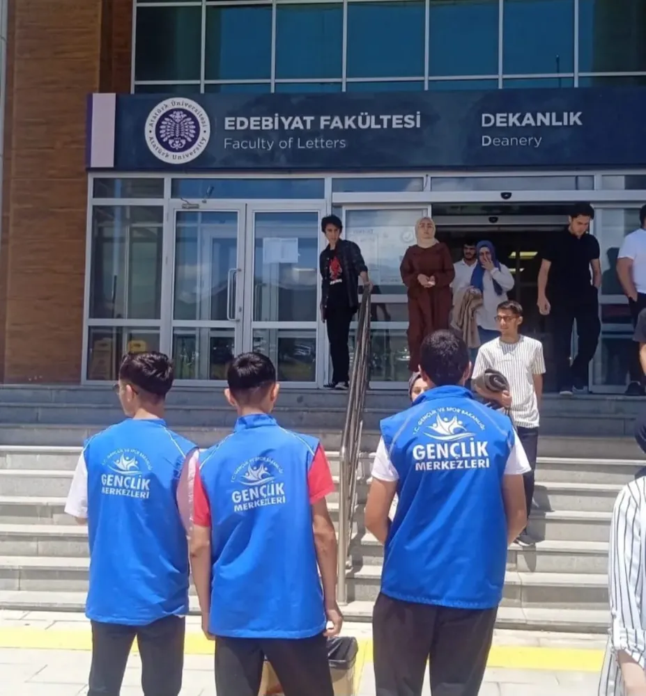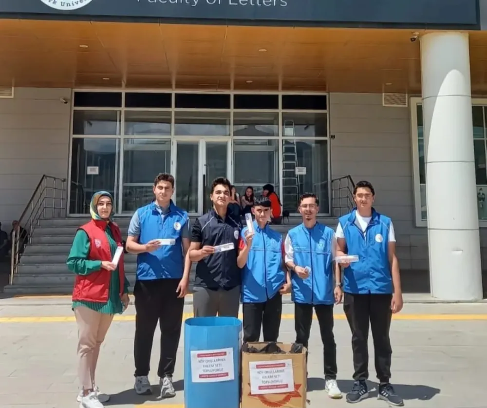 Erzurum Gençlik Merkezi gönüllüleri, YKS’nin ardından  sınav merkezlerinde köy okullarındaki öğrenciler için kalem seti topladı.
