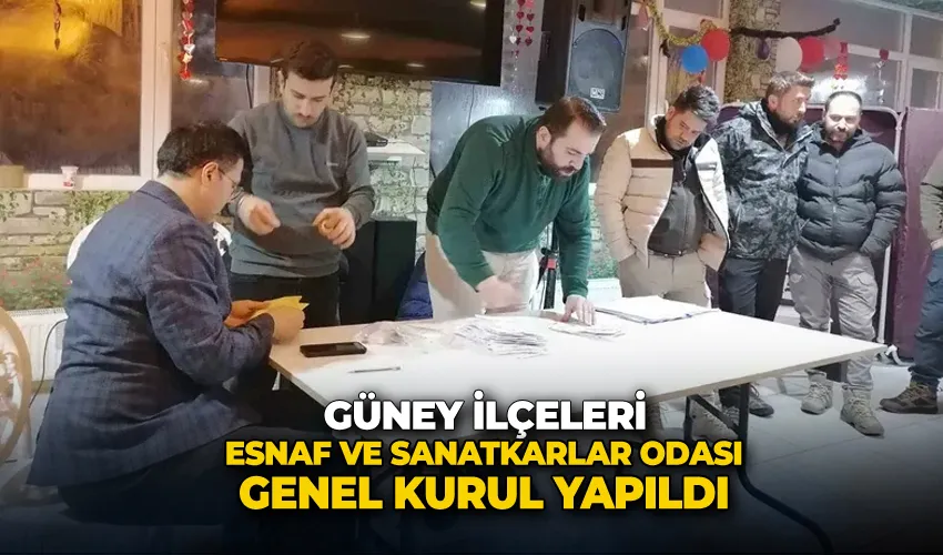 435 delegenin oy kullandığı seçimde Abdulmuttalip Aras 124 oy alarak Güney ilçelerinin Esnaf ve Sanatkarlar Odası Başkanı seçildi. Diğer adaylar Sabrullah Bayır 119, Barancan Şaka 102, Faruk Atalay ise 81 delegenin oyunu aldı.