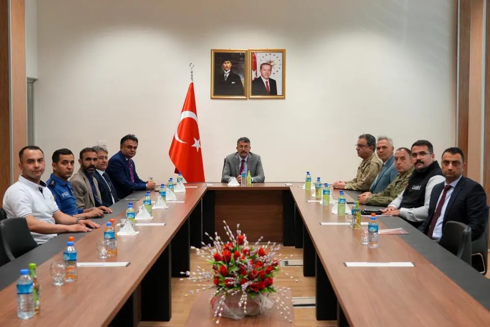 Hakkari Valisi Ali Çelik’in başkanlığında Göç İdaresi Başkanlığı Sınır Yönetimi Genel Müdürü Ozan Gazel, Yüksekova Kaymakamı Mustafa Akın, İl Jandarma Komutanı Tuğgeneral Necip Çarıkcıoğlu, Otluca Dağ ve Komando Tugay Komutanı Tuğgeneral Ufuk Hilmi Orhan, İl Göç İdaresi Müdürü Aykut Alptekin, Esendere Gümrük Müdür Vekili Mutasım Taş ve ilgili birim temsilcileri ile birlikte Esendere Gümrük Müdürlüğü’nde düzenlenen toplantıda, sınır kapısında yürütülen çalışmalar ve hizmetler ele alındı. Toplantıda, gümrük müdürlüğü bünyesinde sürdürülen faaliyetler hakkında bilgi alan Vali Çelik, personelin karşılaştığı sorunlar ve ihtiyaçlar konusunda da değerlendirmelerde bulundu. İlgili birimlerin taleplerini dinleyen Vali Çelik, hizmetlerin daha etkin ve verimli yürütülmesi için gereken hususlarda istişarelerde bulundu. Toplantının ardından katılımcılara teşekkür eden Vali Ali Çelik, tüm ekibe çalışmalarında başarılar diledi.