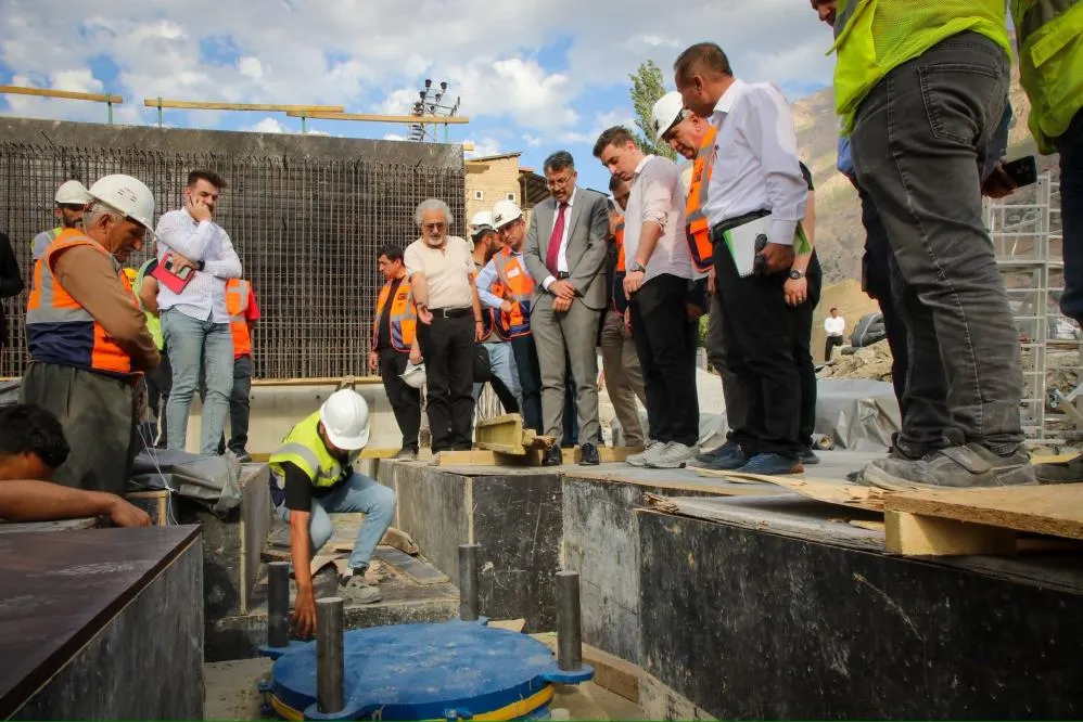 Hakkari Valisi Ali Çelik, sismik izolatör teknolojisinin kullanılacağı 100 yataklı Kadın Doğum ve Çocuk Hastanesi'nin inşaatında incelemelerde bulundu.