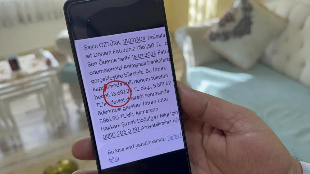 Hakkari'de kış şartlarının etkili olduğu bir dönemde, gelen yüksek doğal gaz faturaları vatandaşların tepkisine neden oldu. Akmercan Hakkari Şırnak Doğal Gaz Dağıtım Sanayi Ve Ticaret A.Ş. tarafından kendisine gönderilen son faturanın 8 bin 848 TL olduğunu belirten Naif Önal, bu rakamın kabul edilemez olduğunu söyledi. Önal, aralık ayına ait faturada 717 metreküp doğal gaz kullandığının iddia edildiğini, metreküp birim fiyatının 11,85 TL olarak yansıtıldığını ifade etti. Toplam tüketim bedelinin 15 bin 334 TL olarak hesaplandığını, bunun 6 bin 555 TL'sinin devlet tarafından karşılandığını, geriye kalan tutarın ise kendisine fatura edildiğini belirten Önal, "Hakkari'de bir hanenin en fazla 200-300 metreküp gaz tüketmesi gerekirken 700-800 metreküp tüketim gösterilmesini anlamıyoruz. Bu faturalar nerede, nasıl hesaplanıyor" diyerek tepki gösterdi.