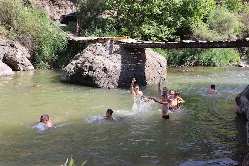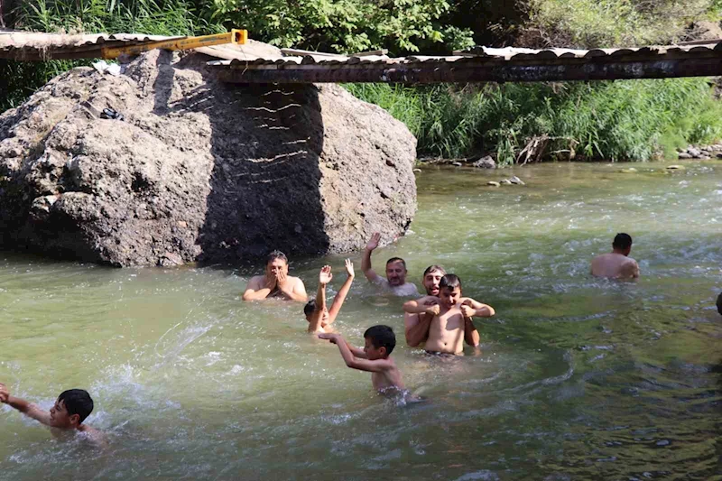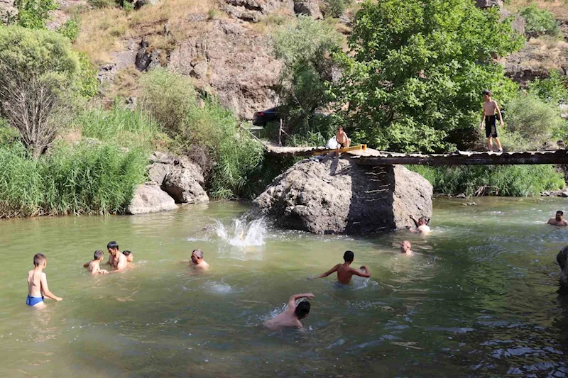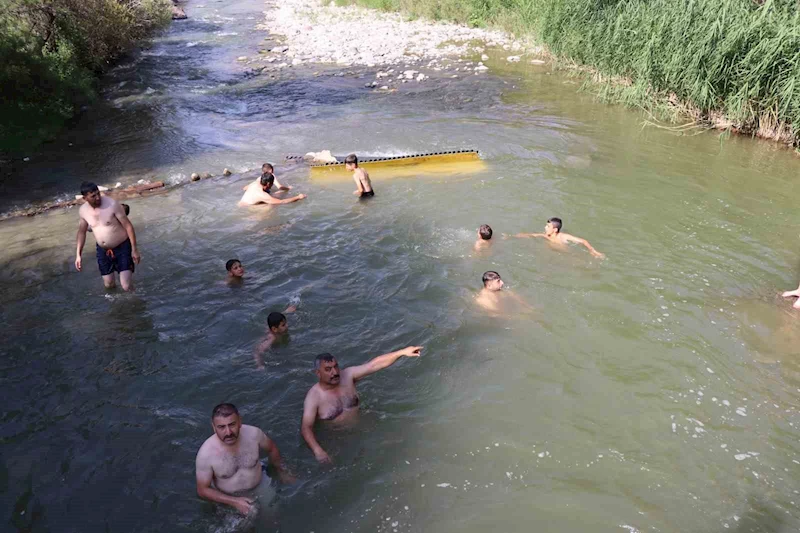 Erzurum’un Şenkaya ilçesinde sıcaktan bunalan vatandaşlar, derelerde hem serinliyor hem de eğleniyor.