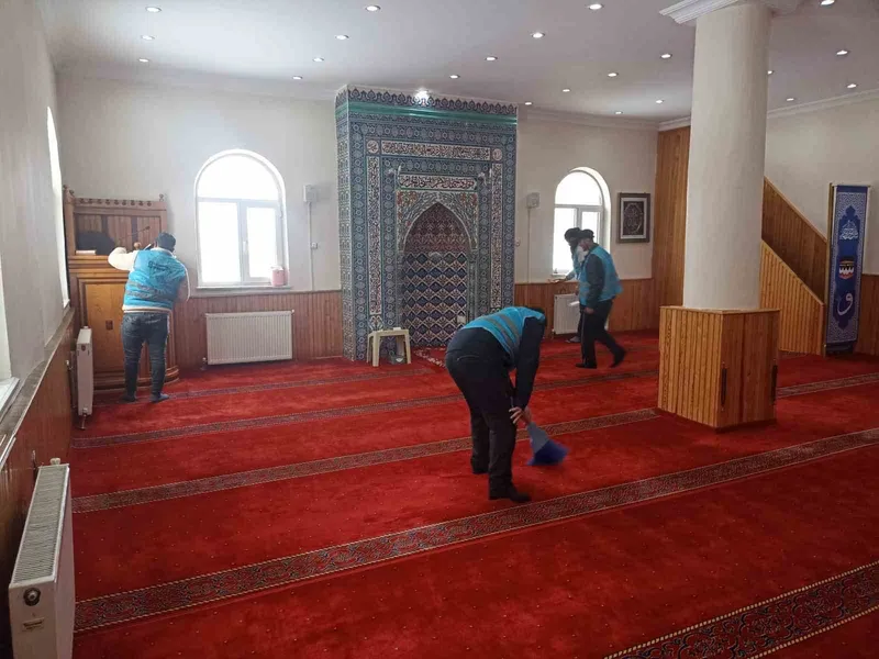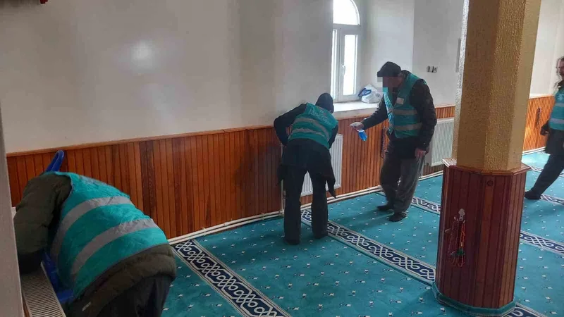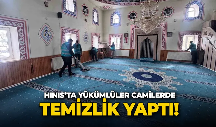 Erzurum’un Hınıs ilçesinde denetimi serbestlik uygulaması çerçevesinde yükümlüler tarafından camilerde temizlik çalışması yapıldı.