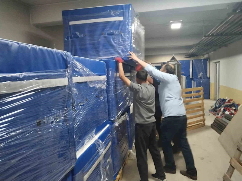Gençlik ve Spor İl Müdürlüğü tesislerinde geçici olarak depoya alınan minderler bakım ve onarımın tamamlanması ile hizmete sunulacak.