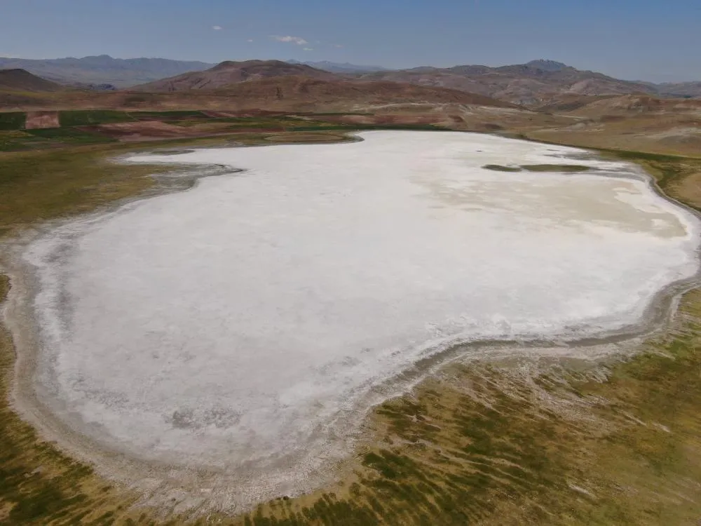Van'ın Saray ilçesine 15 kilometre uzaklıkta bulunan ve 371 hektar alana sahip olan Tuz Gölü, bu yıl mevsim normallerinin üzerinde seyreden sıcaklıklar ve yetersiz yağışlar nedeniyle tamamen kurudu.