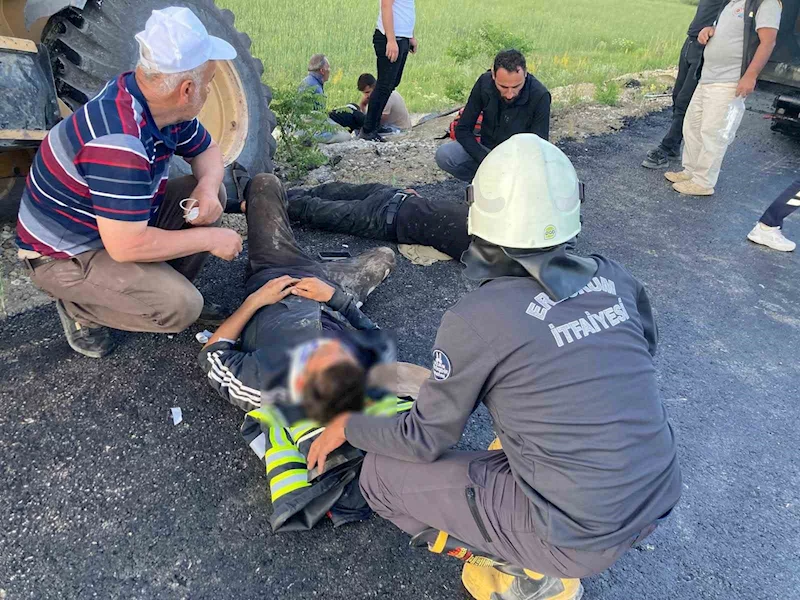 Alınan bilgiye göre olay, Aşkale-Bayburt kara yolu üzerinde Kum ocağı mevkiinde meydana geldi. Asfalt malzemesi taşıyan O.H. yönetimindeki kamyon, malzeme boşaltmak için geri geri manevra yaptığı esnada yol ortasında kör noktasına denk gelen iş makinesine çarptı. Çarpmanın etkisiyle park halindeki iş makinesi hareket ederek yemek yiyen şantiye işçilerinin arasına daldı. Yaşanan kazada 5 şantiye işçisi kazada çeşitli yerlerinden yaralandı.