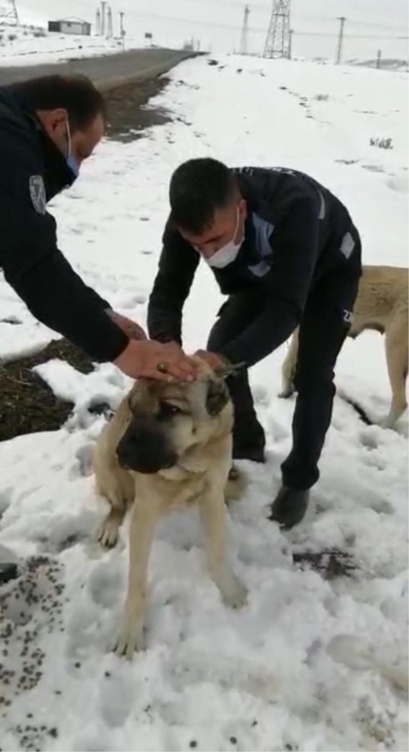 Erzurum’un Aziziye ilçesine bağlı zabıta ekipleri yolda boynuna ip bağlanmış ve gözünden yaralanmış sokak köpeği gördü. Harekete geçen ekipler sokak köpeklerinin boynunda ki ipi keserek, mama verdi. O anlar ise cep telefonu kamerasına yansıdı.