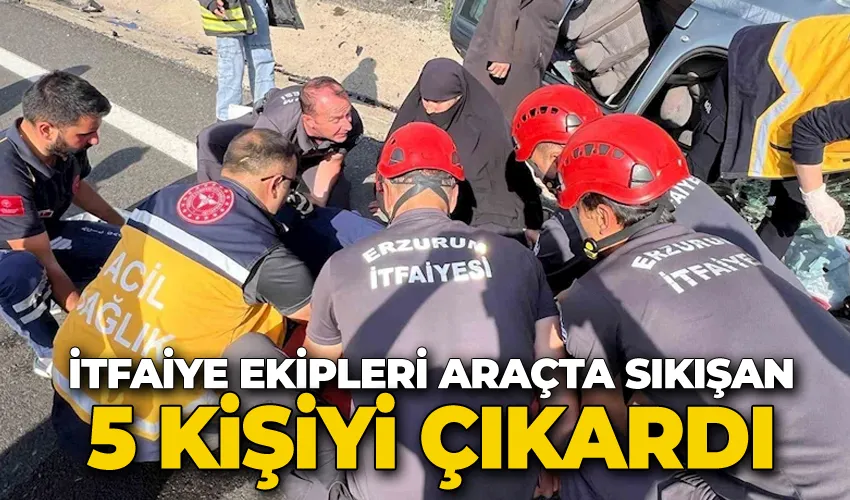 Pasinler’den Erzurum yönüne giden 25 DM 71 plakalı araç henüz sebebi bilinmeyen şekilde orta refüşte takla attı. İhbar üzerine kaza yerine sağlık ve itfaiye personeli sevk edildi. Erzurum Büyükşehir Belediyesi İtfaiye Daire Başkanlığı tarafından konu ile ilgili yapılan açıklamada, "Erzurum - Ağrı yolu Hamamdere mevkii sıkışmalı trafik kazası oldu. Sıkışan 5 vatandaşımız Erzurum merkez itfaiye ekiplerimiz tarafından çıkarılarak sağlık ekiplerine teslim edildi" denildi.
