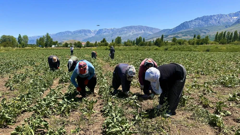 Erzincan'da pancar tarlalarında çapa mesaisi başladı. Kadın tarım işçileri, sabahın erken saatlerinden gün batımına kadar süren zorlu mesaiyle hem üretime hem de aile bütçelerine katkı sağlıyor.