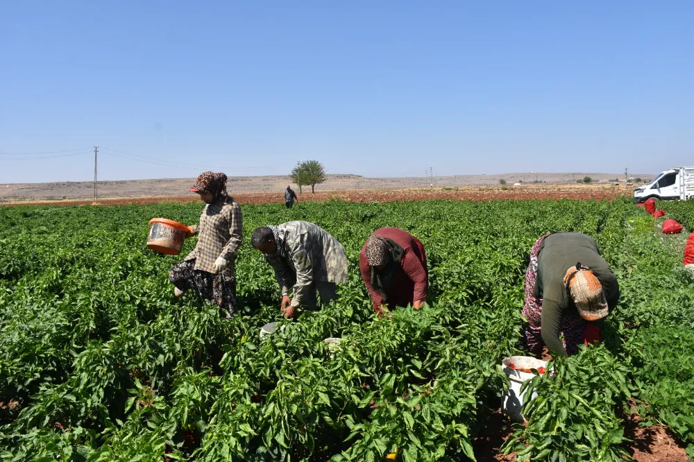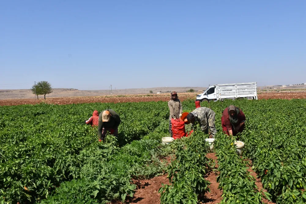 Hasat vaktinin gelmesi çiftçiler kadar tarım işçilerini de sevindirirken, biber bahçelerinde 40 dereceyi aşan sıcaklarda açık arazilerde çalışan işçiler, gün boyu biber toplayarak geçimlerini temin etmeye çalışıyor.