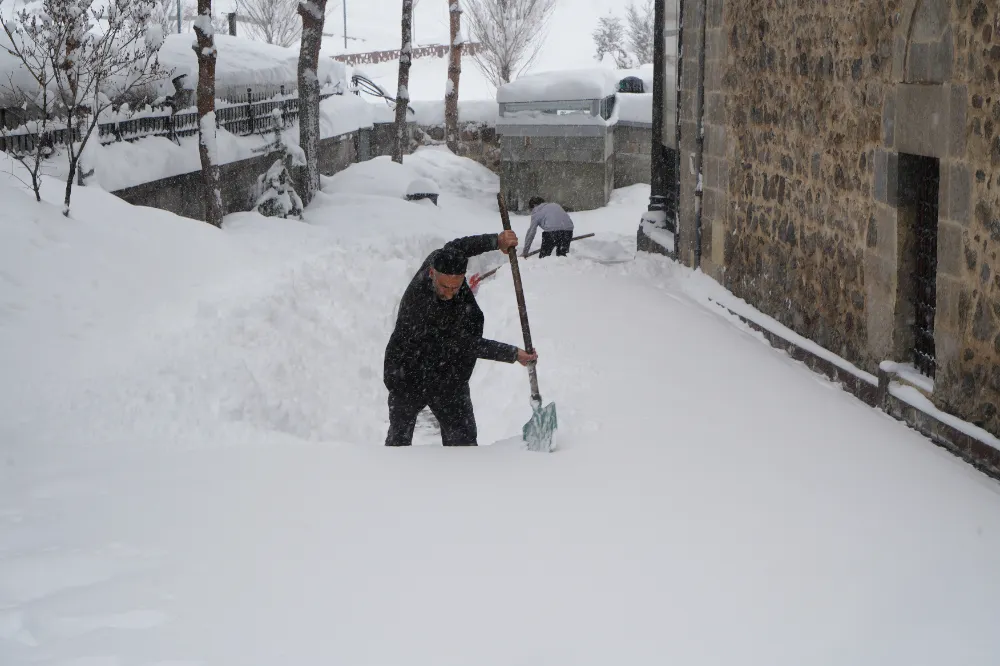 Erzurum son yılların en çok ve kuvvetli kar yağışını yaşıyor. Yollar kar yüzünden sürücülere zor anlar yaşatırken hayatta olumsuz etkileniyor. Erzurum’da dün akşama doğru başlayan kar yağışı sabah saatlerinde de etkisini sürdürdü. Yoğun kar yağışıyla cadde ve sokaklar beyaza bürüdü, park halindeki araçlar tamamen karla kaplandı. Okulların tatil edilmesi nedeniyle trafikte yoğunluk yaşanmadı. Belediye ve Karayolları ekipleri sorumluluk alanlarında çalışmalarını aralıksız sürdürüyor. Vatandaşlar ve sürücüler karla kaplanan yollarda ilerlemekte güçlük çekerken, bazı vatandaşlar iş yerleri önünde biriken karları temizlemek zorunda kaldı.