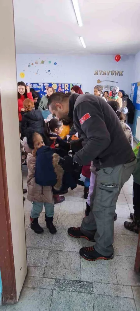 Kar tünellerinden geçerek zorlu yolları aştılar, kış şartlarında 2 bin 700 rakımlı köyde minik yürekleri ısıttılar