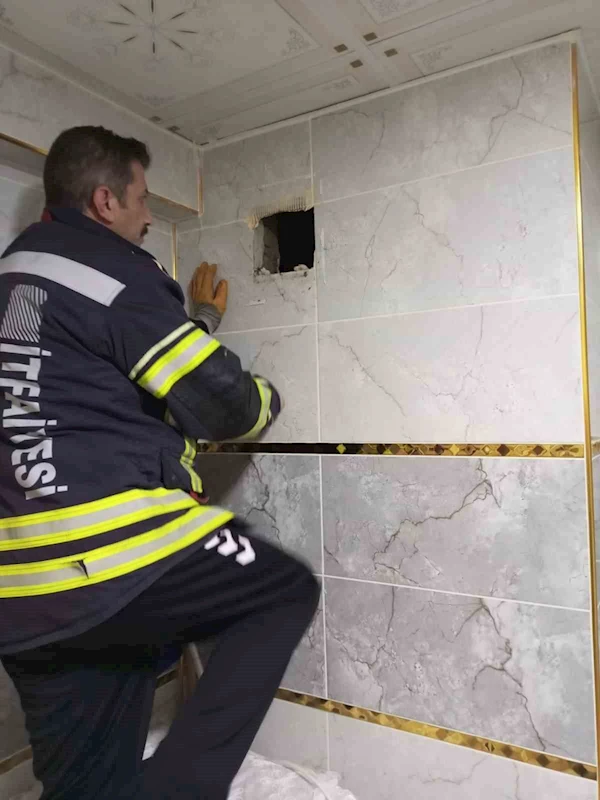Erzurum’da bir evin havalandırma boşluğuna giren ve burada mahsur kalan kavga yavrusu, itfaiye ekipleri tarafından kurtarıldı.