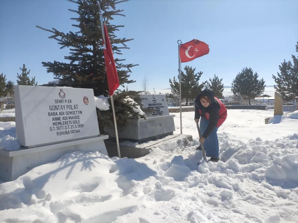 Şehitliği ziyaret eden Aile ve Sosyal Hizmetler personeli, mezarların ve yürüyüş yollarının kar altında kalması üzerine kürek ve elleriyle temizlik yaptı. Şehitliği ziyaret etmek isteyen Aile ve Sosyal Hizmetler personeli, hem şehitler için dua etti hem de mezarların üzerini kaplayan karları temizlemek için çalışma başlattı. Yanlarında getirdikleri küreklerle şehit mezarlarının çevresini ve yürüyüş yollarını temizleyen Aile ve Sosyal Hizmetler personeli, kürek bulunmayan alanlarda ise elleriyle karları kaldırarak mezar taşlarını ortaya çıkardı. Yapılan çalışma sayesinde şehitlikteki birçok mezar yeniden görünür hale getirildi ve ziyaretler daha kolay yapılabilir duruma geldi.