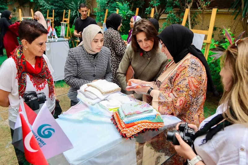 Erzurum’un Olur ilçesine bağlı Ormanağzı Köyü’nde el emeğiyle dokunan geleneksel Karnavas Bezi, Kahire’de düzenlenen etkinlikte tanıtıldı.