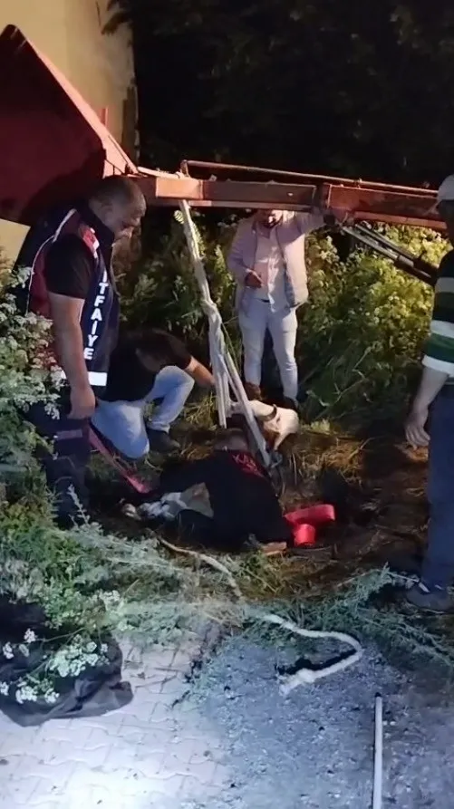 İhbar üzerine olay yerine kısa sürede ulaşan itfaiye ekipleri, hayvanın düştüğü çukurun dar olması ve hayvanın ağırlığı nedeniyle kurtarma çalışmalarına başladı. Uzun uğraşlar sonucunda, foseptik çukurun etrafı kırılarak genişletildi.
