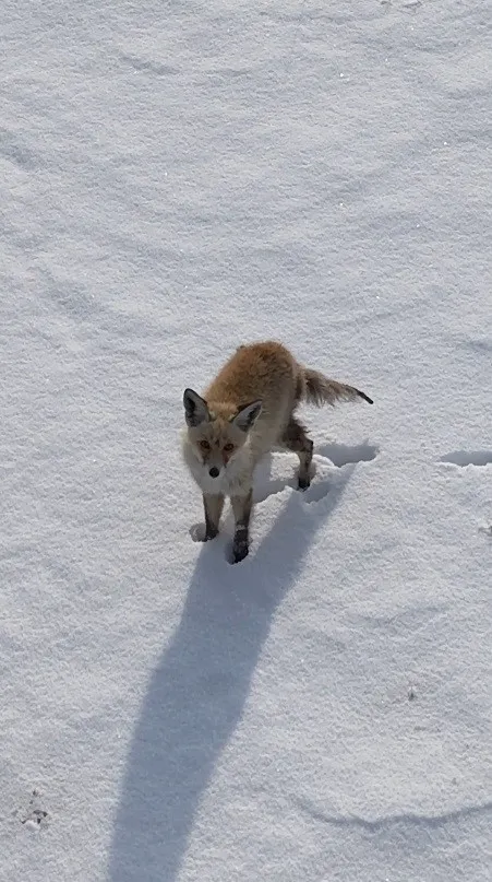 Kars'ta dondurucu soğukta yiyecek arayan tilkinin kendisini görüntüleyen dronu fark etmesiyle yaşadığı merak dolu anlar saniye saniye kaydedildi. Gökyüzündeki yabancı cismi av sanan tilkinin dronla imtihanı izleyenleri gülümsetti.