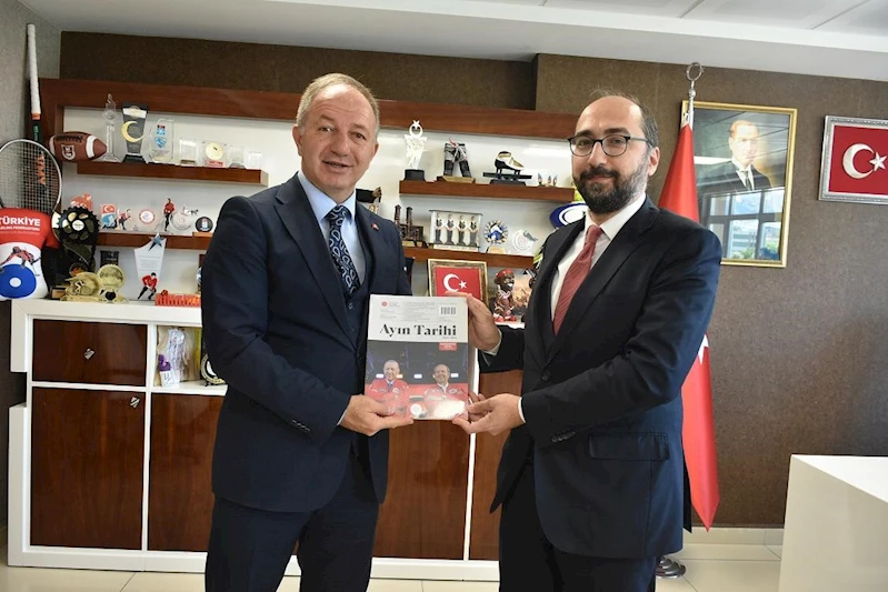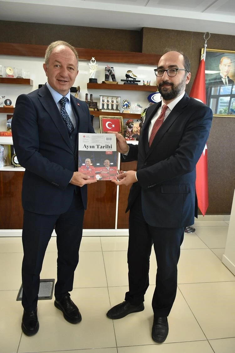 Cumhurbaşkanlığı İletişim Başkanlığı Erzurum Bölge Müdürü Recep Küçükece, Gençlik ve Spor İl Müdürü Levent Çakmur’u ziyaret ederek, Kuzey Kıbrıs Türk Cumhuriyeti’nde düzenlenen TEKNOFEST’in hikayesinin de yer aldığı ‘Ayın tarihi’ adlı dergiyi hediye etti.
