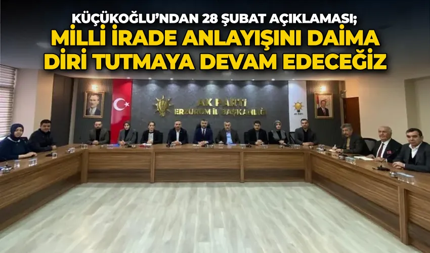 !Millet iradesine karşı tanklar yürütülmüş; seçilmiş Türkiye Cumhuriyeti Hükümeti görevden el çektirilmiş; başta başörtülü kadınlar olmak üzere bu ülkenin mütedeyyin kesimlerine yönelik büyük bir zulüm dalgası başlatılmıştır’ diyen Başkan Küçükoğlu, açıklamasını şöyle sürdürdü; ‘Bu ülkenin vatandaşları kendi ülkesinin kurumlarına sırf dini hassasiyetlerinden ötürü sokulmamaya çalışılmıştır. AK Parti olarak 28 Şubat ve benzeri tüm darbeci ve vesayetçi girişimlerin karşısında olduğumuzu burada bir kez daha ilan ediyoruz. İktidarımız döneminde attığımız adımlarla vesayet odaklarını teker teker çökerttik. Milli iradeyi bu süreçte yeniden inşa ederek ülkemizi ve milletimizi hak ettiği demokrasi standardıyla buluşturduk.’