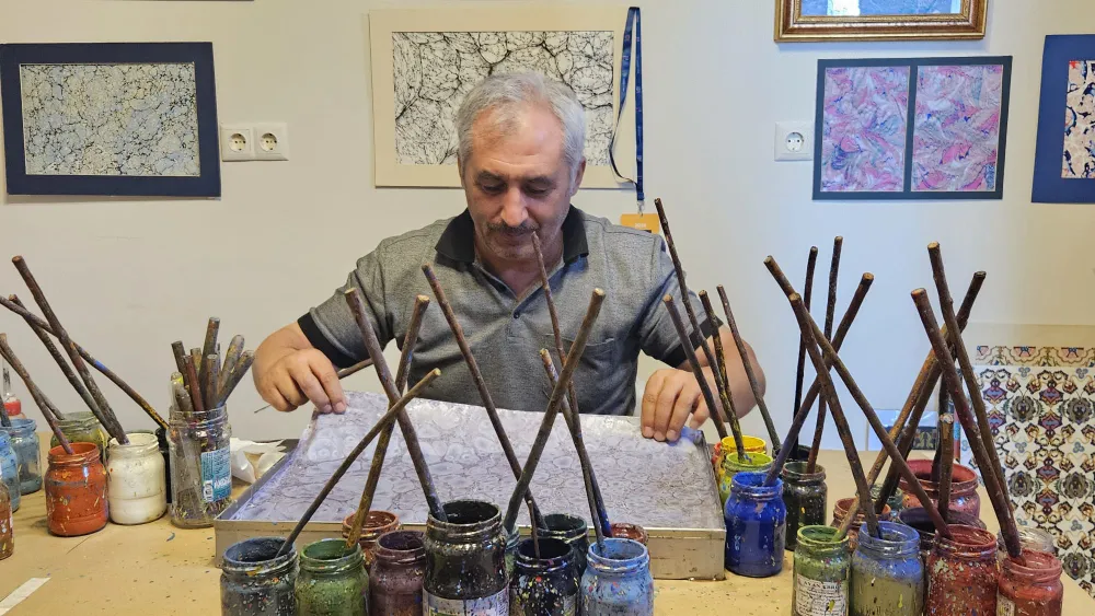 Tuzcu, Ebrunun insanla özdeşleştiğini de vurgulayarak, “Ebru bir daha tekrarı olmayan bir sanattır. Nasıl ki her insanın huyu, sesi, ışığı farklıysa, her ebru da birbirinden farklıdır. Ayrıca insanın yüzde 70’i su olduğu gibi, ebrunun da yüzde 70’i sudur” ifadelerini kullandı.