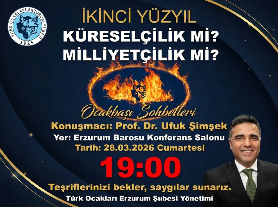 Türk Ocakları Erzurum Şubesi’nin “Ocakbaşı Sohbetleri” serisinin yeni durağı olan etkinlikte, küreselleşmenin ulusal kimlik ve milliyetçilik üzerindeki etkileri derinlemesine tartışılacak. Prof. Dr. Şimşek’in eğitim bilimleri ve sosyal bilimler alanındaki uzmanlığıyla zenginleşecek sohbet, katılımcılara düşündürücü bir akşam yaşatmayı hedefliyor.