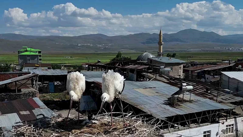 Erzurum’un Yakutiye ilçesine bağlı Güzelova Mahallesi, göçmen kuşların uğrak noktası haline geldi. Özellikle leylekler, bu sakin mahalleyi adeta kendilerine yuva yaptı. Cami kubbesine yuva yapan leylek ailesi dron ile görüntülendi.
