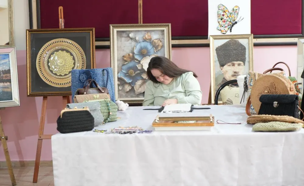 Muş Halk Eğitim Merkezi Müdürlüğü'nde düzenlenen takı tasarım kursuna katılan down sendromlu Rabia Nur Güngör, ortaya koyduğu el emeği ürünlerle takdir topluyor. Sanatla sosyal hayata aktif olarak katılan Güngör'ün çalışmaları yoğun ilgi görüyor. Meslek lisesi mezunu olan 24 yaşındaki Rabia Nur Güngör, kurs süresince çanta, mozaik tablo ve rölyef çalışmalar üretti. Özellikle kristal mozaikten hazırladığı Atatürk portresi en çok ilgisini çeken eserler arasında yer alan
