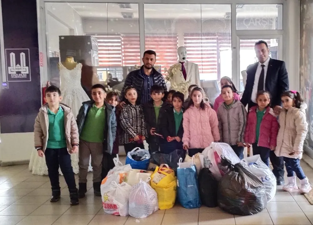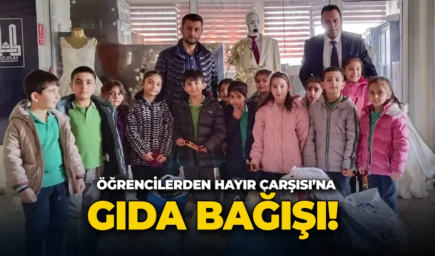 Erzurum Şehit Kubilay Karaman İlkokulu öğrencileri, Büyükşehir Belediyesi’ne bağlı Hayır Çarşısı’na gıda bağışında bulundu.