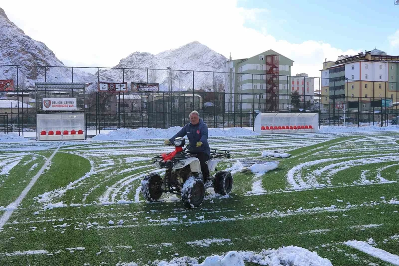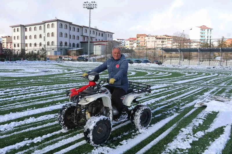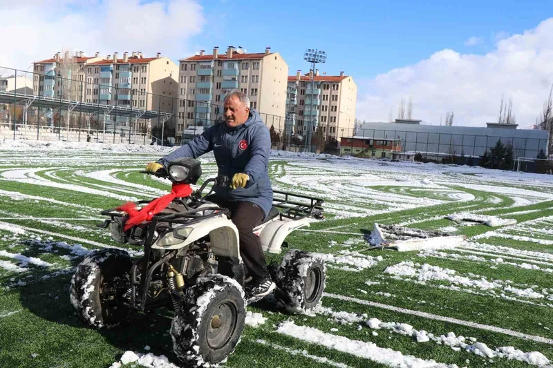 60 yaşındaki İbrahim Kara, bugün yağan kar yağışının ardından Oltu Stadyumu’nun zeminini tek başına temizleyerek görevine olan bağlılığını bir kez daha gösterdi. Mesleğini severek yaptığını belirten Kara, hayatını futbola adadığını ifade etti.