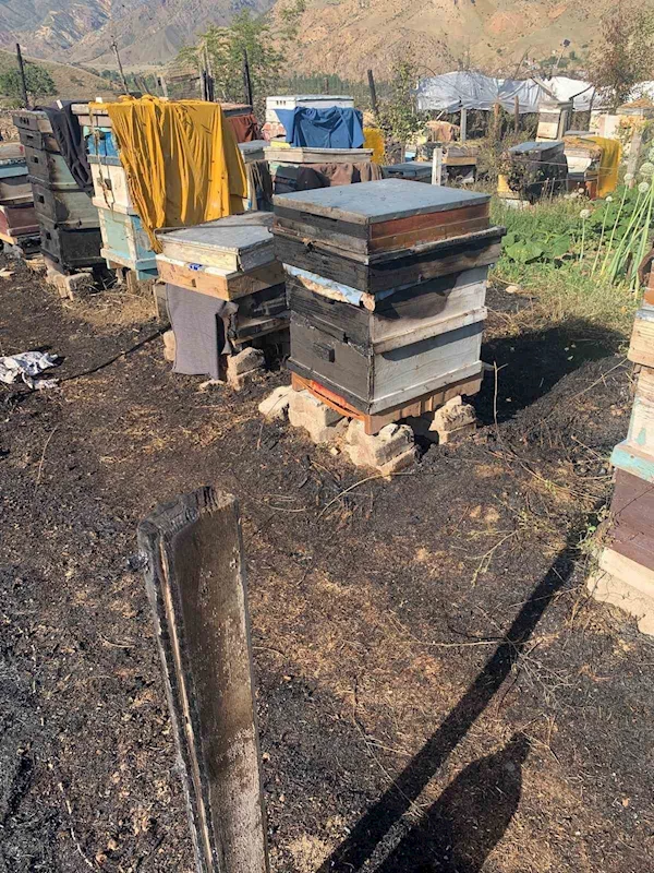 Erzurum’un Oltu ilçesine bağlı İriağaç Mahallesi’nde çıkan yangında 30 arı kovanı tamamen yanarak kullanılmaz hale geldi. Yangında yüzlerce arı da telef oldu.