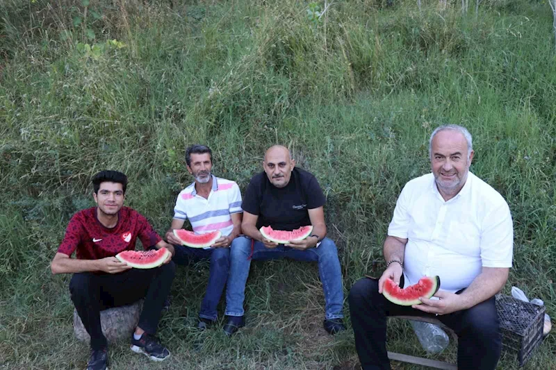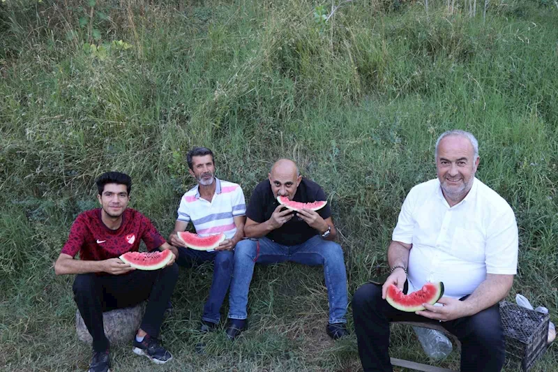Oltu’nun Yusuf Ziyabey Mahallesi Osmanbey Sokak’ta bulunan Yıldıztekin Çiftliği’nde, yerli üretici Selami Yıldıztekin’in bu yıl ilk kez ektiği Karain karpuzları tarladan sofralara ulaşıyor. 10 yıldır karpuz üretimi yapan Yıldıztekin, bu sezon ürettiği dev karpuzlarla dikkat çekiyor.