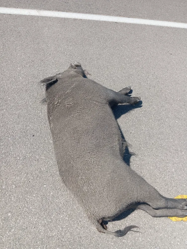Van'ın Özalp karayolunda seyir halindeki otomobil, aniden yolan çıkan domuza çarptı