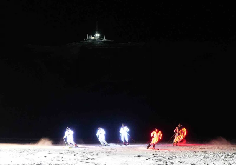 Palandöken Kayak Merkezi’nde yeni sezon açılışı yapıldı. Meşaleli kayak, ledli adamlar, lazer ve kar motoru gösterisi açılışa damga vurdu.