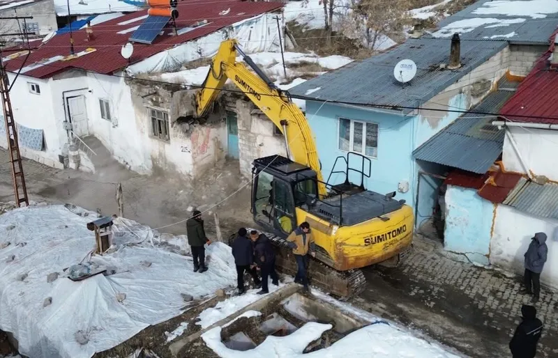 Erzurum’un Pasinler ilçesinde belediye ekipleri, Yeni Mahalle semtinde çevre kirliliği ve güvenlik riski oluşturan metruk binalara yönelik çalışmalarını sürdürüyor.