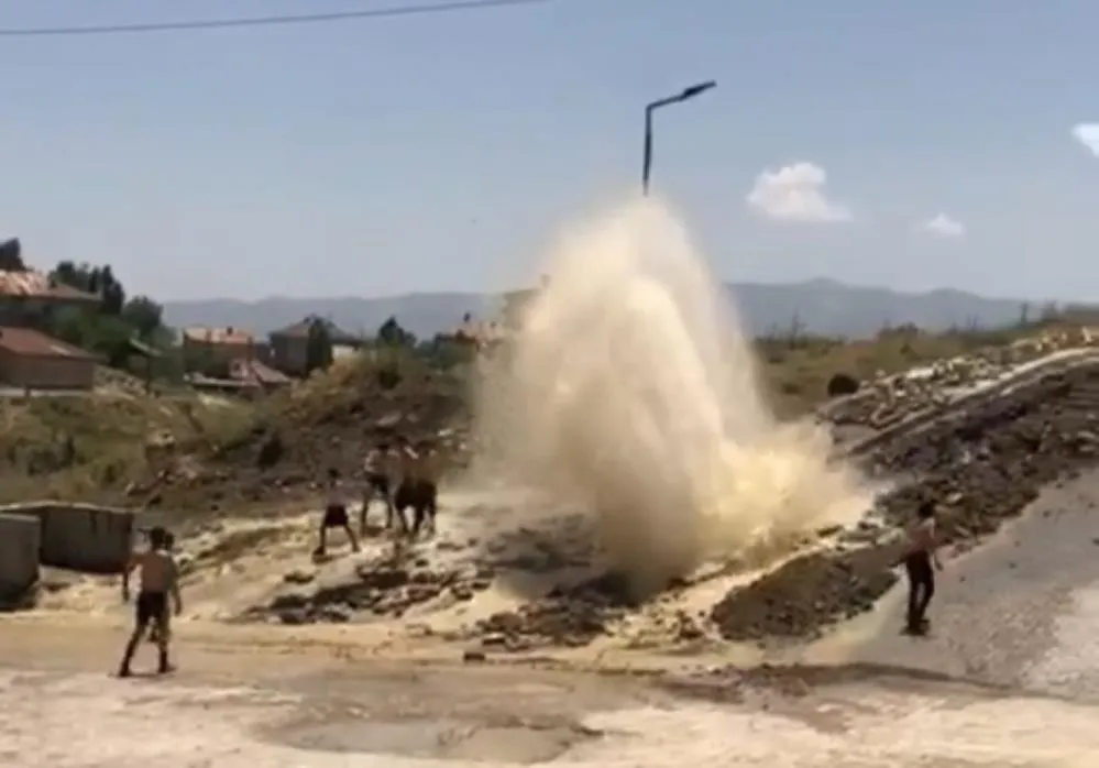 Yüksekova ilçesinde yürütülen altyapı çalışmaları sırasında su borusu patladı. Yüksek basınçla havaya fışkıran su, çocuklar için beklenmedik bir eğlenceye dönüştü. İşçiler patlağı gidermek için hummalı bir çalışma başlatırken, mahallenin çocukları bu durumu fırsat bilerek olay yerine akın etti.