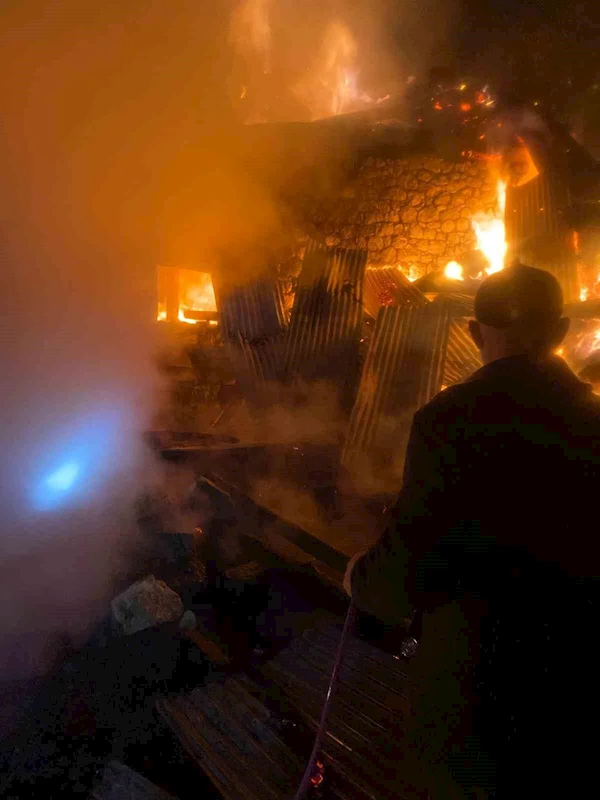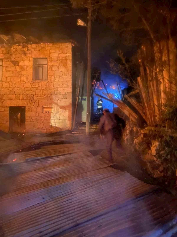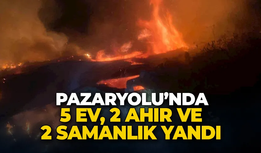Erzurum’un Pazaryolu ilçesinde meydana gelen yangında 5 ev, 2 ahır ve 2 samanlık yandı.