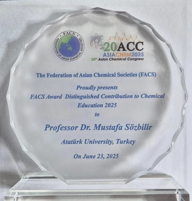 Atatürk Üniversitesi öğretim üyesi Prof. Dr. Mustafa Sözbilir, kimya eğitimi alanında yaptığı önemli çalışmalar nedeniyle uluslararası bir ödüle layık görüldü.