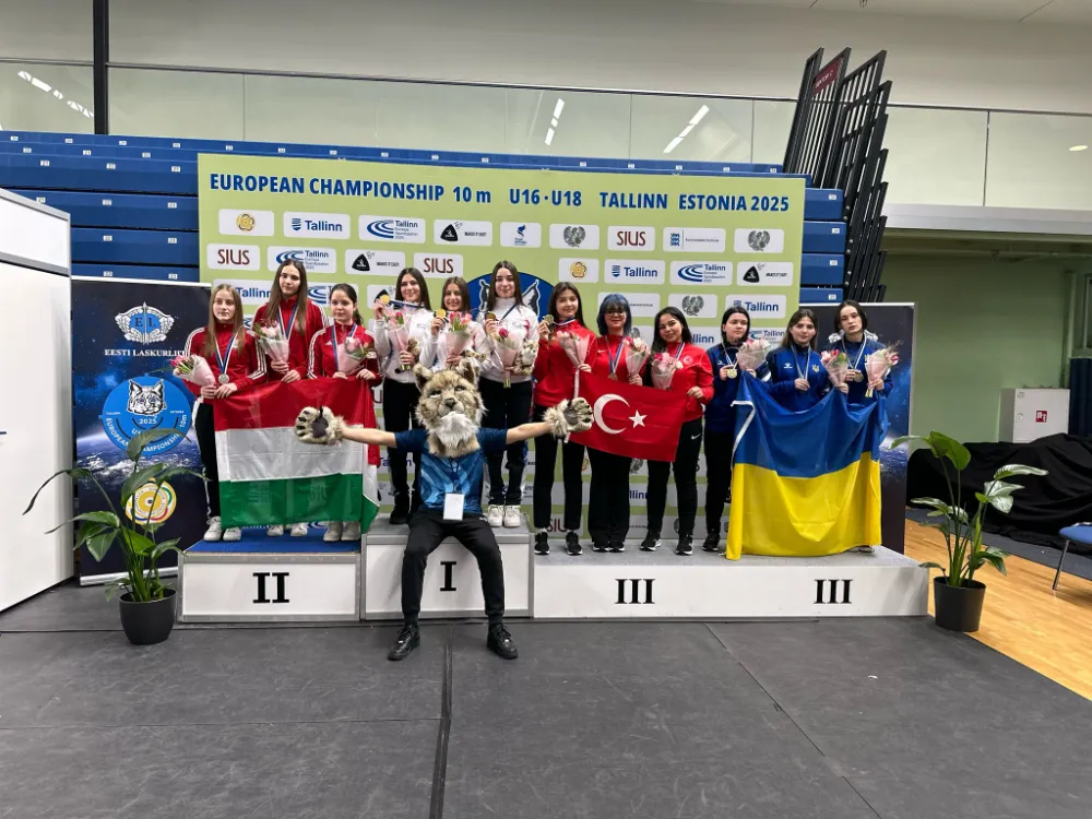 9-15 Şubat 2025 tarihlerinde Estonya’nın başkenti Tallinn’de gerçekleşen U16 ve U18 Havalı Silahlar Avrupa Şampiyonası’nda 10 M Havalı Tüfek U-18 Trio Kadınlar kategorisinde mücadele eden U18 10 M Havalı Tüfek Kadın Milli Takımı, Avrupa 3.’sü oldu Erzurumlu Rana Gzöübüyük’ün de içinde yer aldığı Kadın Milli Takımı, U18 Trio Kadınlar kategorisinde elde ettiği büyük başarı ile Avrupa’nın en iyi 3. Takımı oldu.