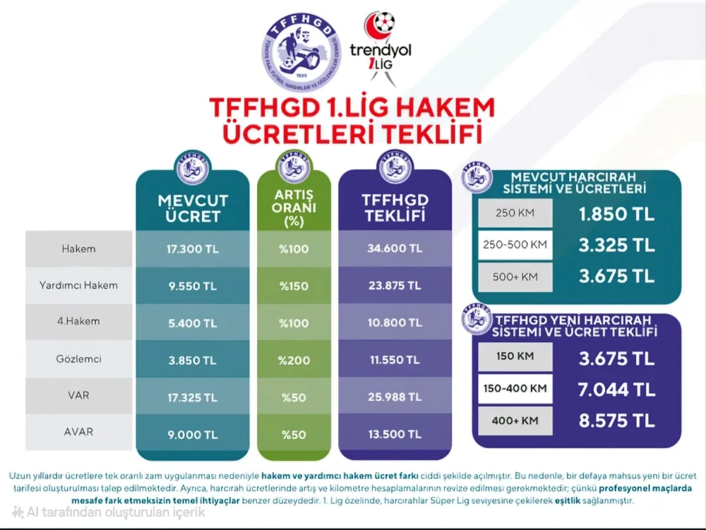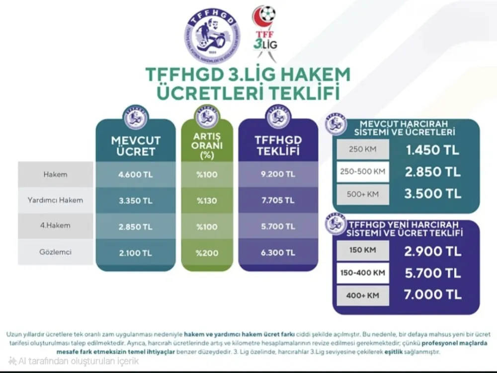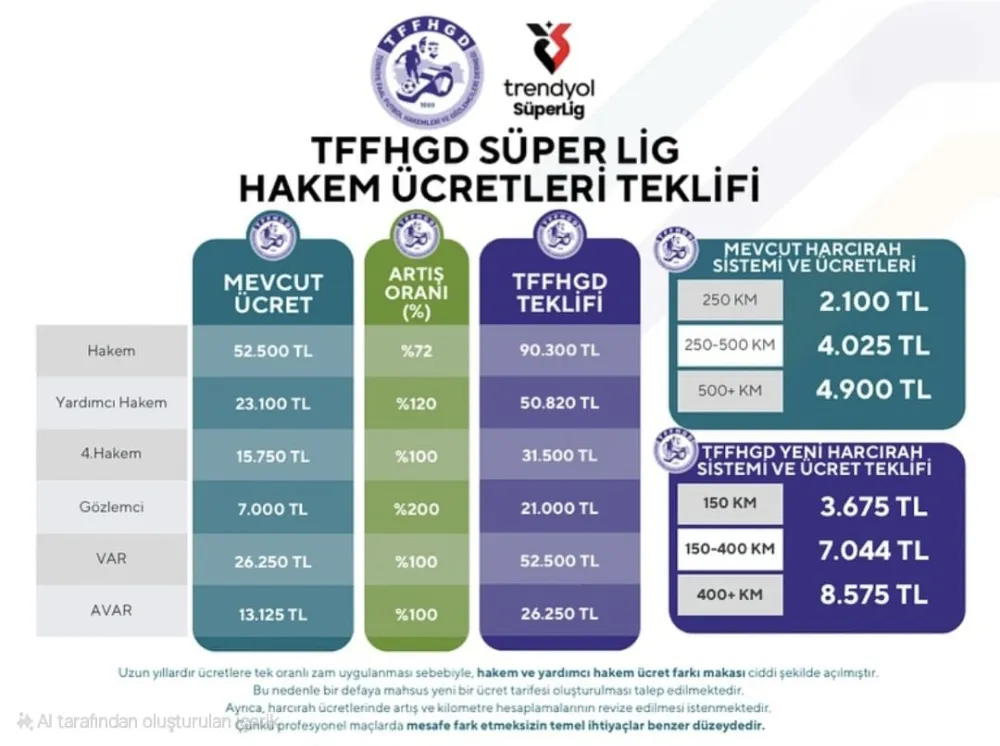 Türkiye Futbol Federasyonu'na (TFF) resmi yazı ile iletilen teklif, artan maliyetler ve hakemlik mesleğinin sürdürülebilirliği üzerine odaklanıyor. Avrupa ile arasındaki ücret farkı yüzde 85'e varan hakemler, ekonomik zorluklar nedeniyle mesleği bırakma eğiliminde.