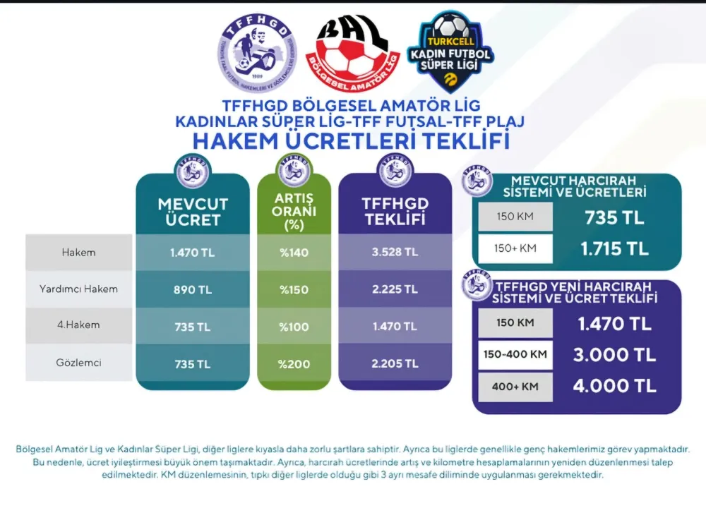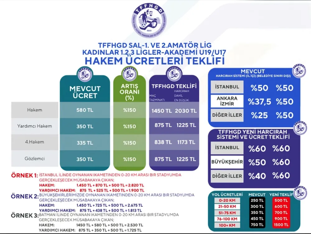 Türkiye Faal Futbol Hakemleri ve Gözlemcileri Derneği (TFFHGD), 2025-2026 sezonu için hazırladığı ücret artışı ve düzenleme teklifini TFF’ye resmen sundu. Dernek, enflasyon ve yaşam maliyetlerindeki artış nedeniyle mevcut ücretlerin yetersiz kaldığını, bunun da hakemlik mesleğini terk edenlerin sayısını artırdığını vurguladı.
