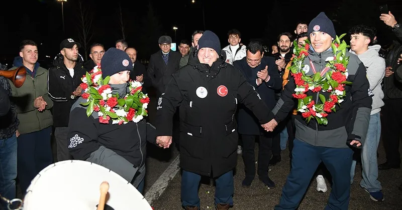 Avusturya’dan dört madalya ile Erzurum’a dönen Bingül kardeşler için havalimanında karşılama töreni düzenlenirken alanda ETÜ Rektörü Prof. Dr. Bülent Çakmak’ın yanı sıra çok sayıda akademisyen ve öğrenci yer aldı.
